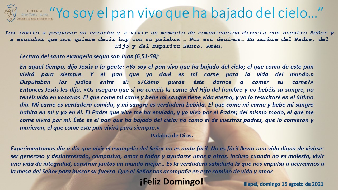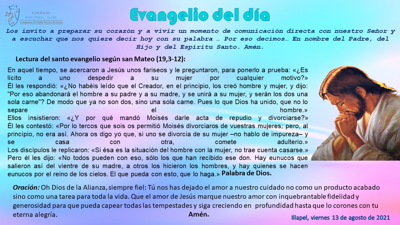 Momentos de oración de la semana desde lunes 09 a domingo 15 de agosto.