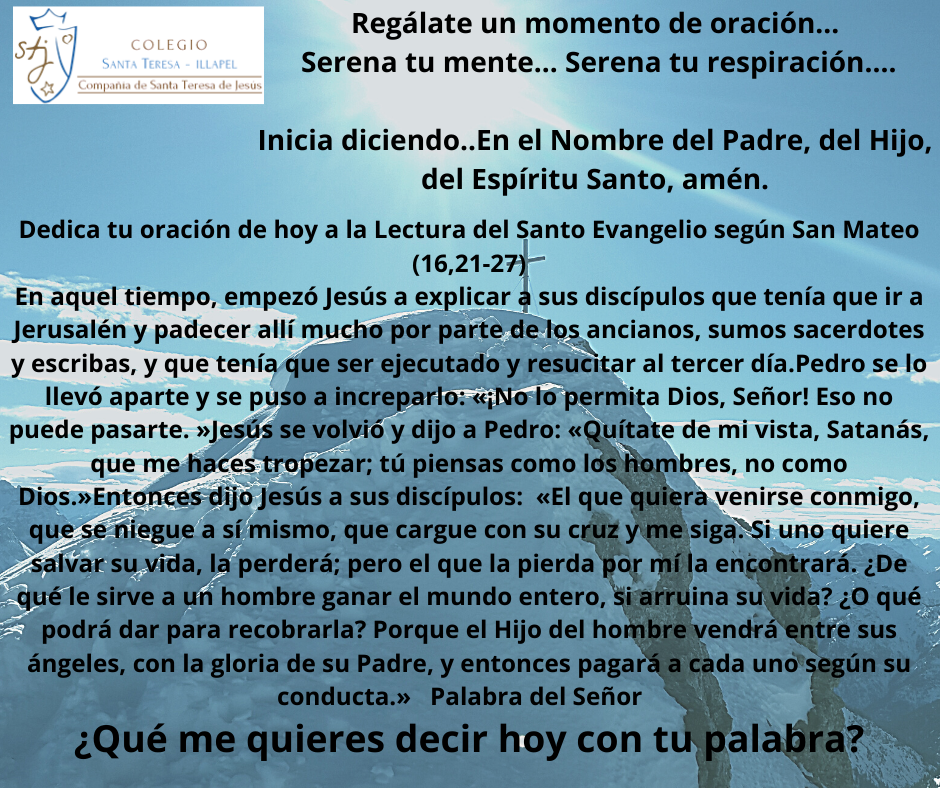 Momentos de oración de la semana del lunes 25 al domingo 30 de agosto.
