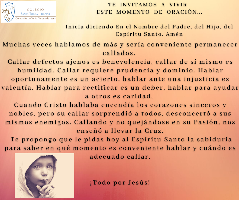 La oración es una amistad, en la que aprendemos a mirarnos como nos mira Dios, en la que aprendemos a amarnos como nos ama Dios y a amar como Él, en la que descubrimos dónde está nuestro verdadero valor. Te invitamos esta semana a regalarte estos momentos de oración...