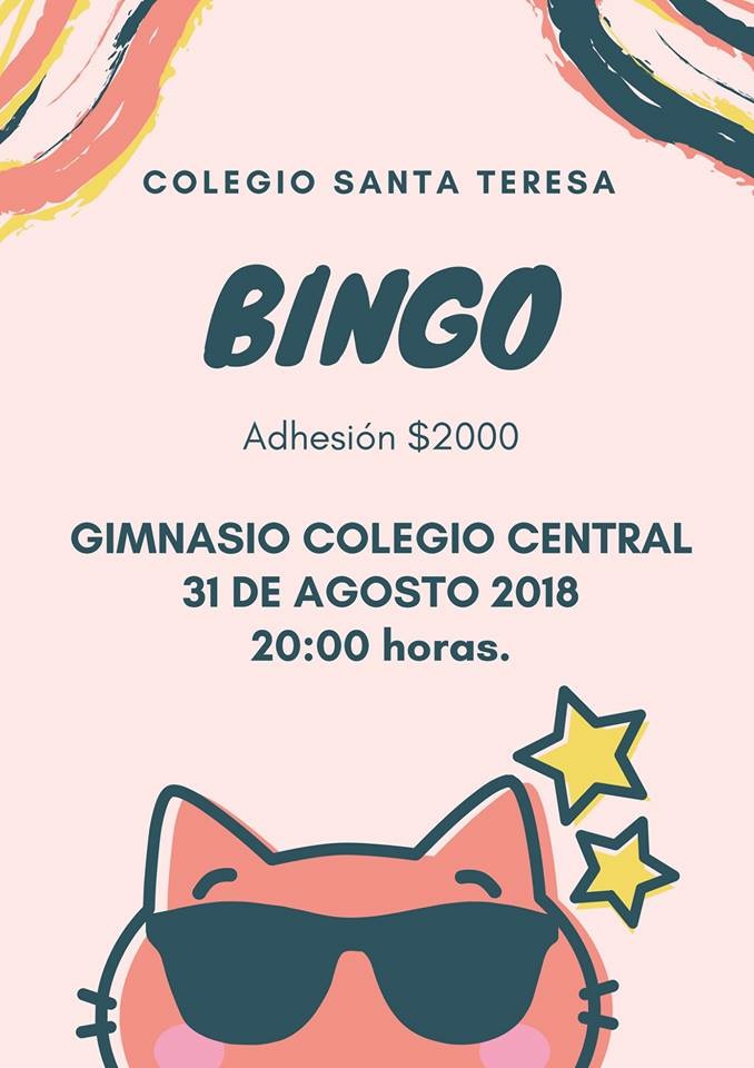 La comunidad del colegio Santa Teresa invita a todos los illapelinos a participar de un entretenido bingo que tiene como objetivo solventar los pasajes de seis estudiantes de nuestro colegio, necesarios para participar de la Jornada Mundial de Jóvenes en Panamá en enero del año próximo.