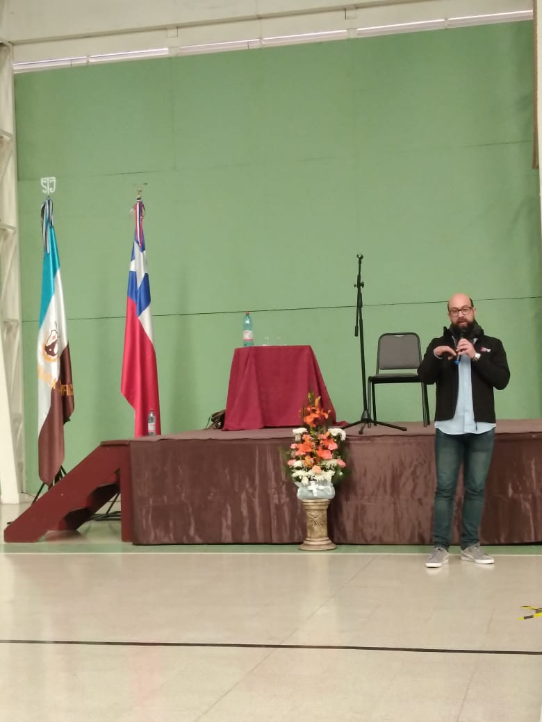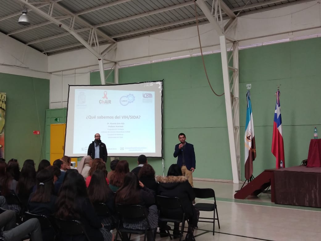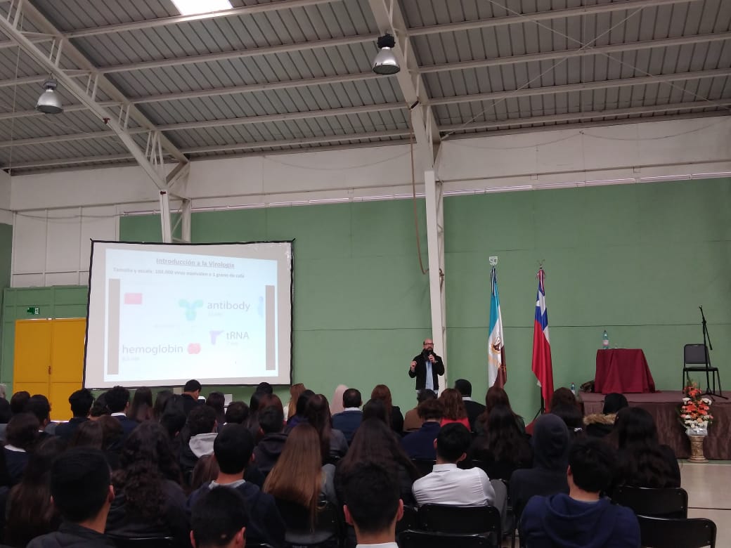 El pasado martes 20 de agosto, el departamento de ciencias del colegio, organizó una jornada de conocimiento del trabajo científico, orientada a difundir la cultura de prevención del VIH-SIDA, y el reconocimiento de la relevancia del trabajo científico para la sociedad. Para ello se invitó al bioquímico y doctor en ciencias de la vida, Ricardo Soto Riffo, profesor del programa de virología del instituto de Ciencias biomédicas de la Universidad de Chile acompañado de Sebastián Riquelme bioquímico y estudiante de doctorado en microbiología.
