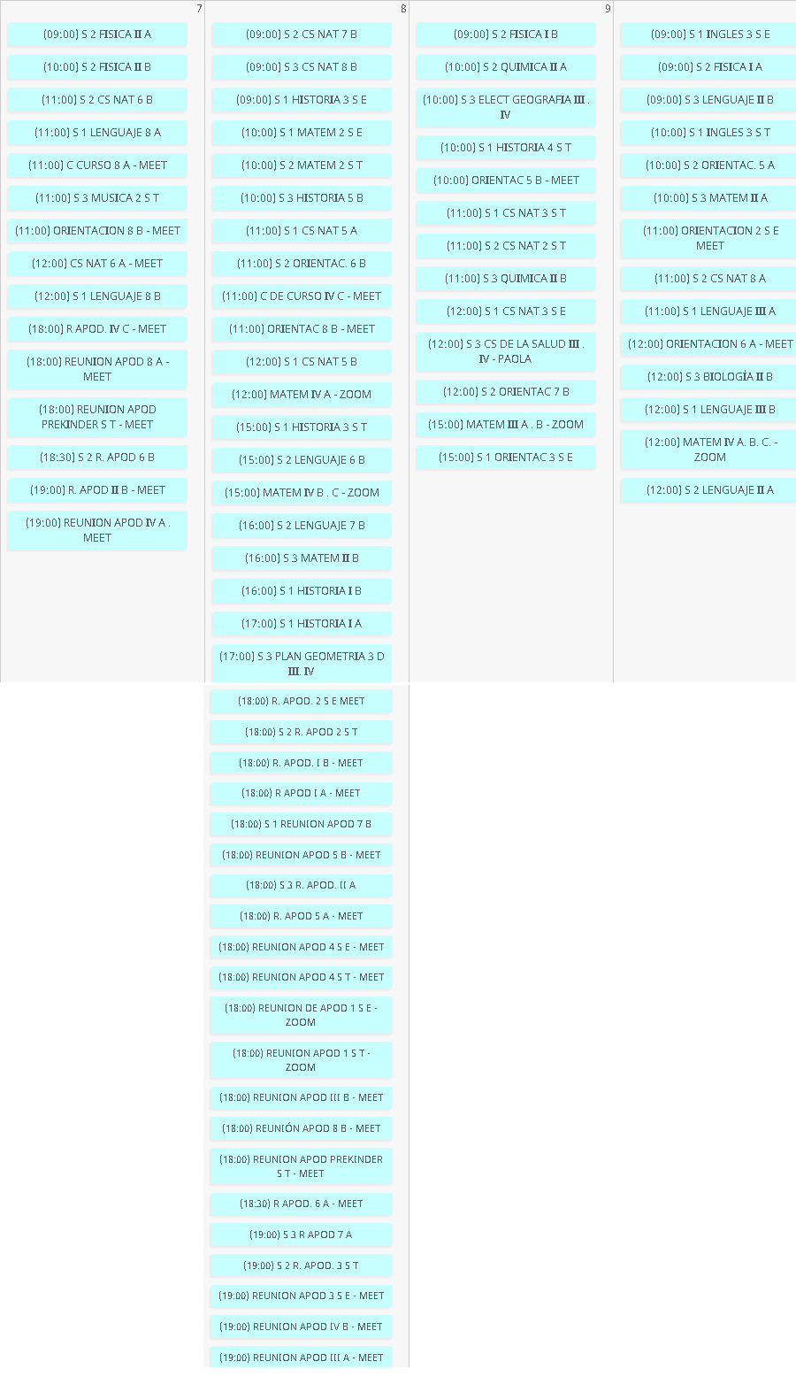 Horarios de clases virtuales y reuniones de apoderados para semana desde el 7 al jueves 10 de septiembre