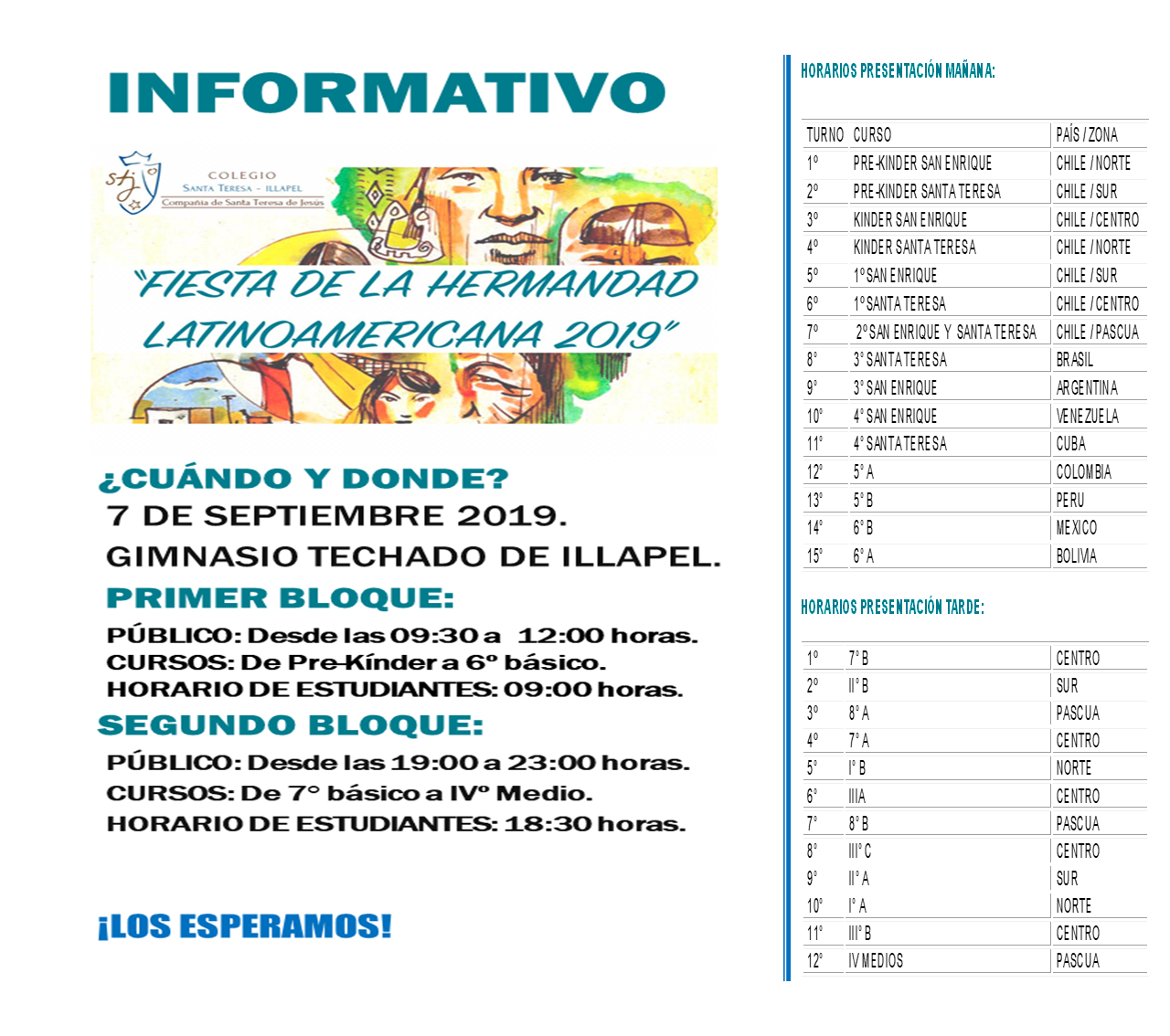 » Informativo fiesta de hermandad latinoamericana 2019.