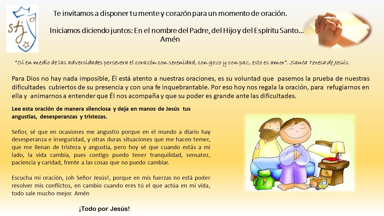 "La oración llega donde tú no puedes llegar y Dios hace lo que tú no puedes hacer", te invitamos a regalarte estos momentos de oración...