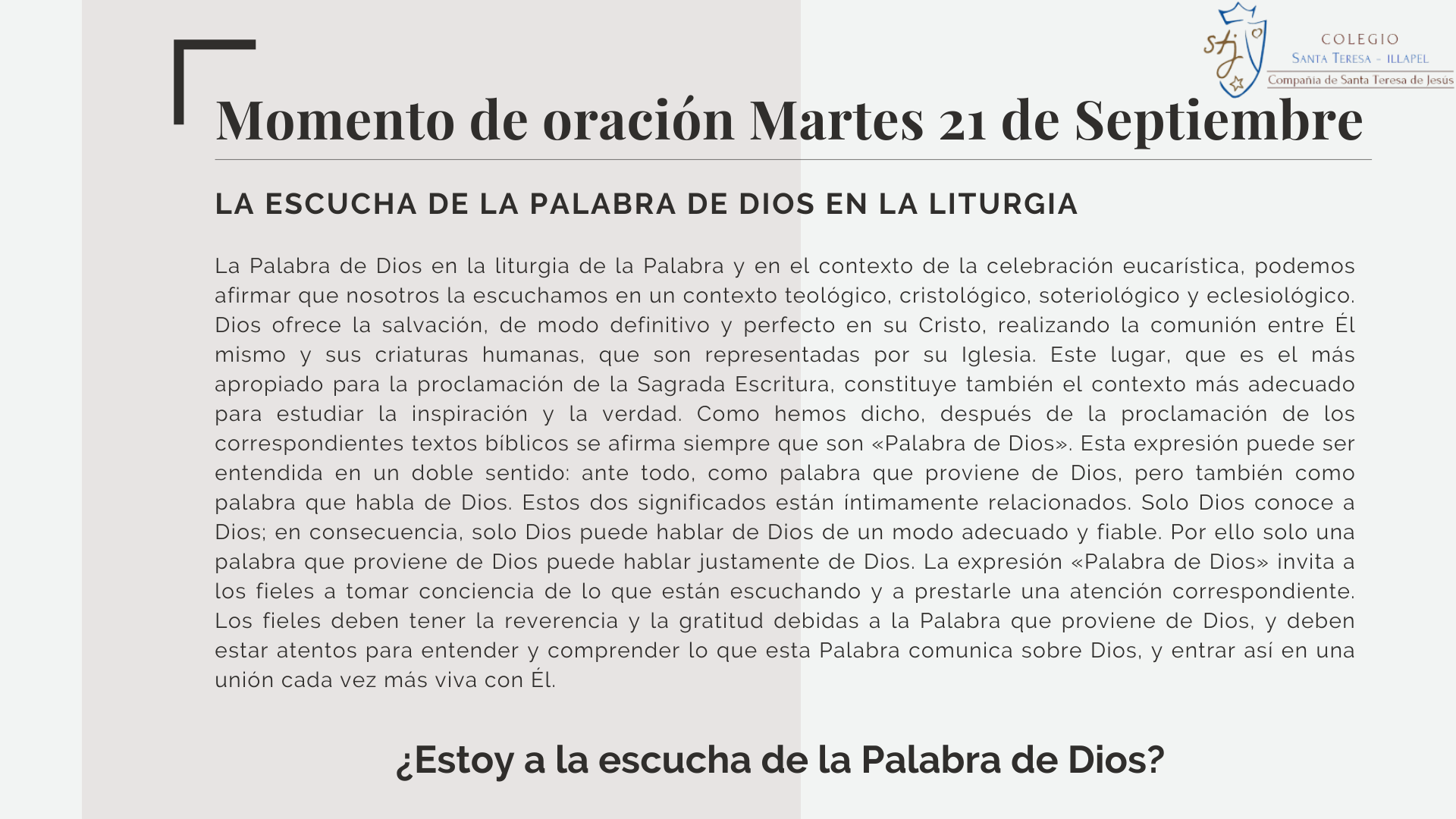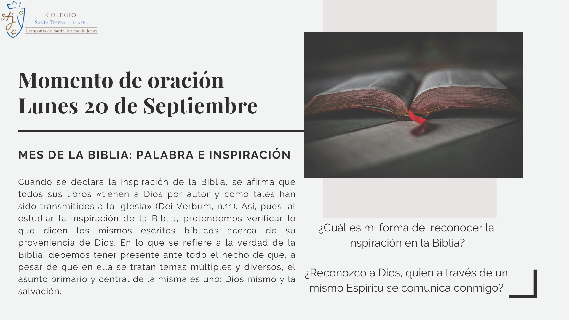 Durante esta semana los invitamos a poder reflexionar acerca de la importancia que le damos a la Palabra de Dios, conociendo un poco más de cerca de la inspiración del Espíritu Santo presente en ella