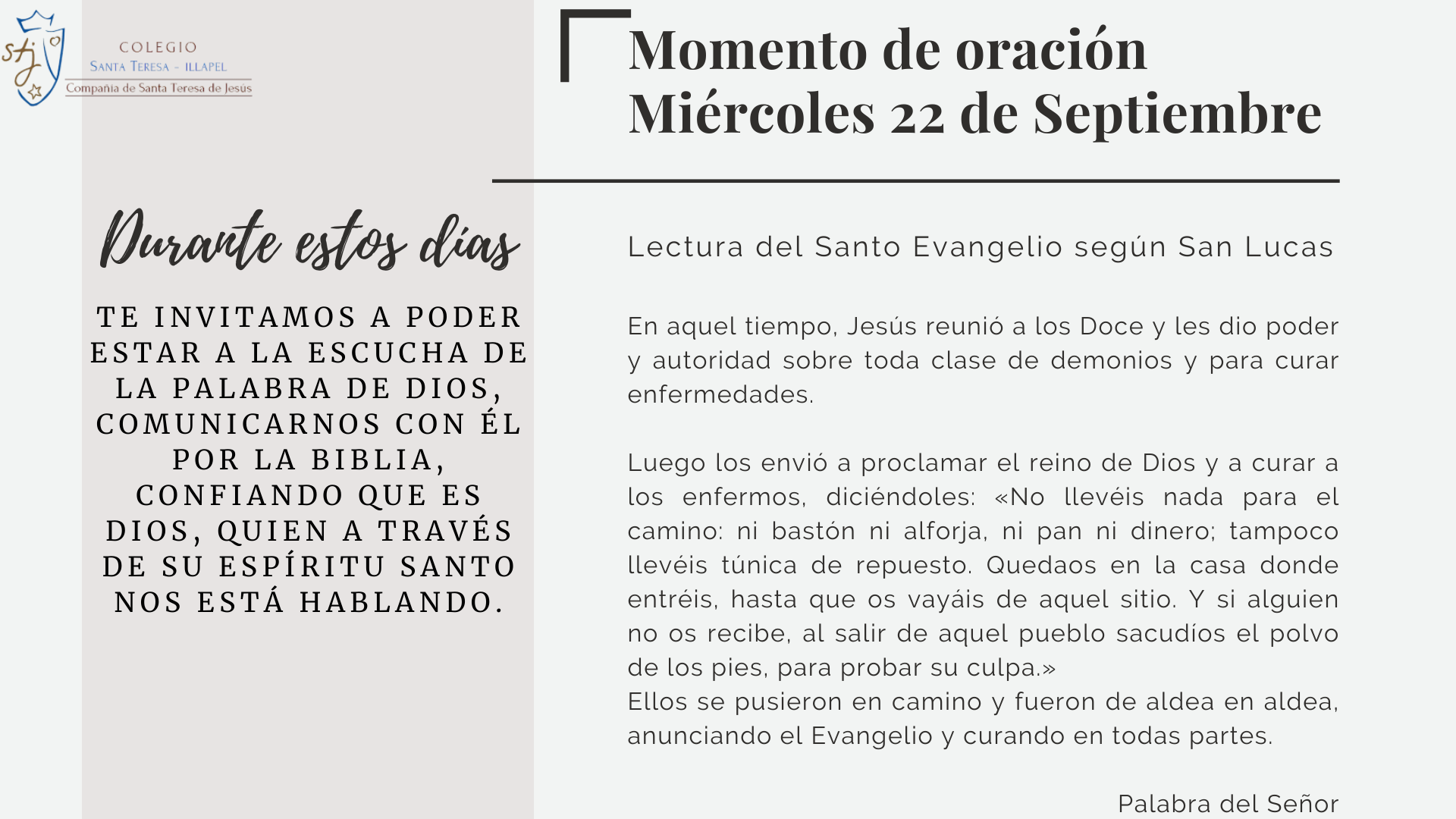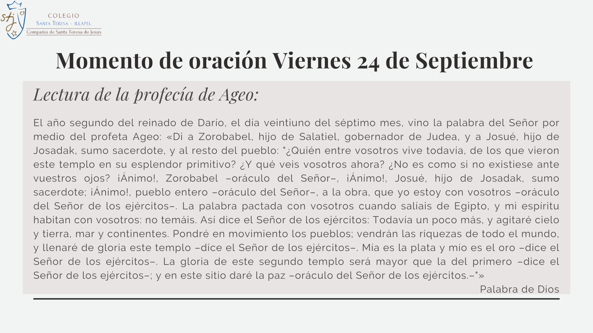 Momentos de oración de la semana del lunes 20 al domingo 26.