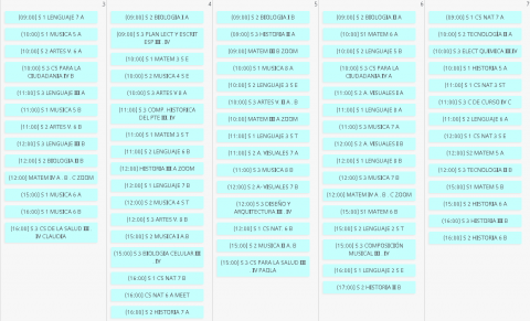 Submitted by sergiooyarzungarcia on Dom, 08/02/2020 - 20:42Informamos de los horarios programados de las clases virtuales para algunos cursos durante la próxima semana, desde el día lunes 3 al 7 de agosto. Se debe tener presente que los horarios son comunicados por los profesores tutores de cada curso oportunamente y que están disponibles en webclass para cada estudiante en la sección calendario.